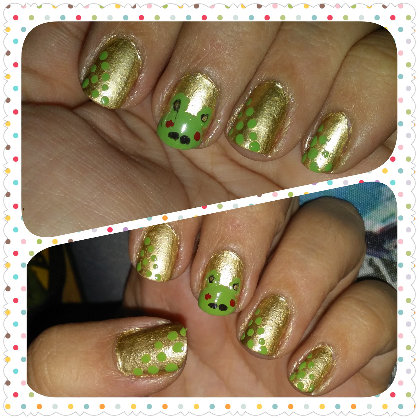 - Si quéreis en el resto de la uñas podéis dibujarle unos lunares en verde para conjuntar con la ranita.